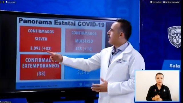 Además agregó 22 casos nuevos en las últimas 24 horas; el total de confirmados en el estado es de 3,095 y 518 fallecimientos