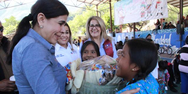 Tan sólo en esa localidad mil 500 niñas y niños recibieron dulces, juguetes, mientras que dos mil trescientos adultos obtuvieron apoyos alimentarios e invernales y vales de Diconsa.