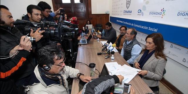 El coordinador ejecutivo de Gabinete, Gustavo Madero, acompañado de la secretaria de Desarrollo Municipal, Rocío Reza y del coordinador de Comunicación Social, Antonio Pinedo, detalló el recorrido y llamó a los ciudadanos interesados en sumarse a la Caravana a que hablen o envíen mensajes de WhatsApp al teléfono 614 219 76 47.