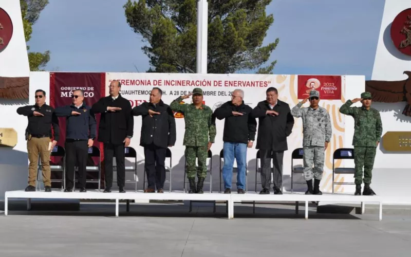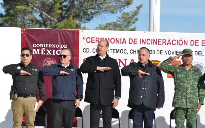 A la par de la Mesa Estatal de Seguridad, se realizó una ceremonia de incineración de enervantes encabezada por el fiscal General del Estado, César Jáuregui Moreno y el alcalde de Cuauhtémoc, Humberto Pérez Mendoza, acompañados de representantes de la Secretaria de Seguridad Pública del Estado (SSPE), la Fiscalía General del Estado (FGE), la Secretaría de la Defensa Nacional (Sedena) y la Secretaría de Seguridad y Protección Ciudadana.