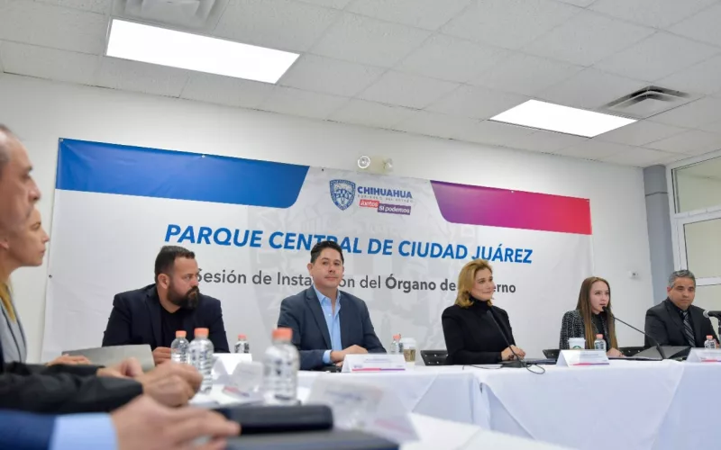La gobernadora Maru Campos encabezó la sesión inicial del Órgano de Gobierno del Parque Central, para la recuperación y autosuficiencia de las instalaciones del Parque Central de Ciudad Juárez, donde además anunció una inversión de 50 millones de pesos destinada a este mismo.