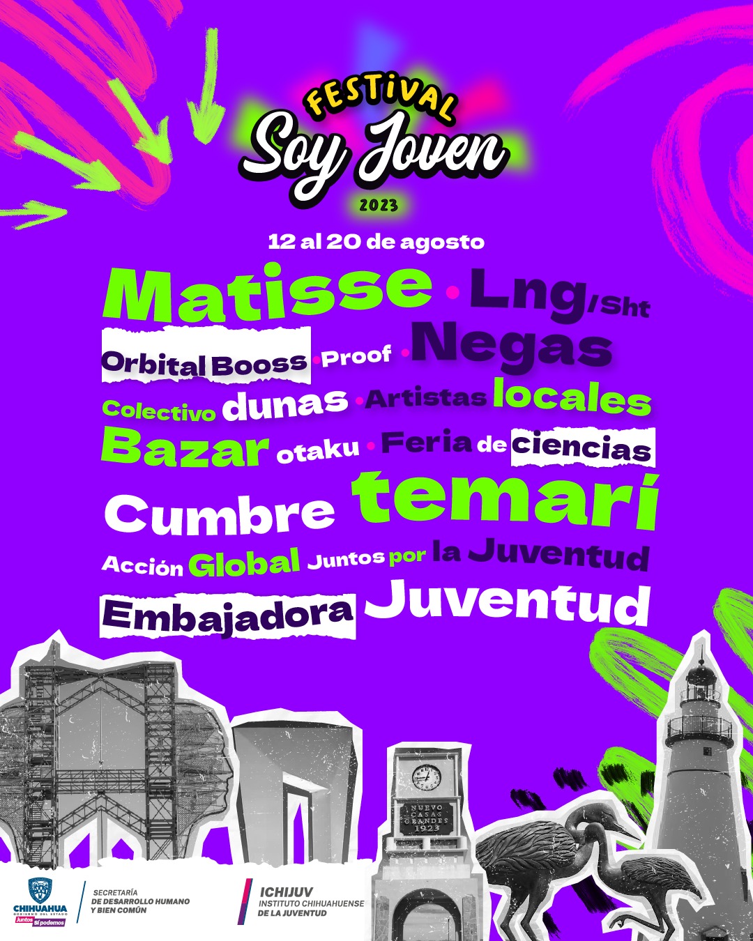 El Instituto Chihuahuense de la Juventud (Ichijuv) dio a conocer el programa de actividades que tiene preparadas para la edición 2023 del “Festival Soy Joven”, que se desarrollará del 12 a 20 de agosto en las ciudades de Juárez, Guachochi, Camargo, Nuevo Casas Grandes y Parral.