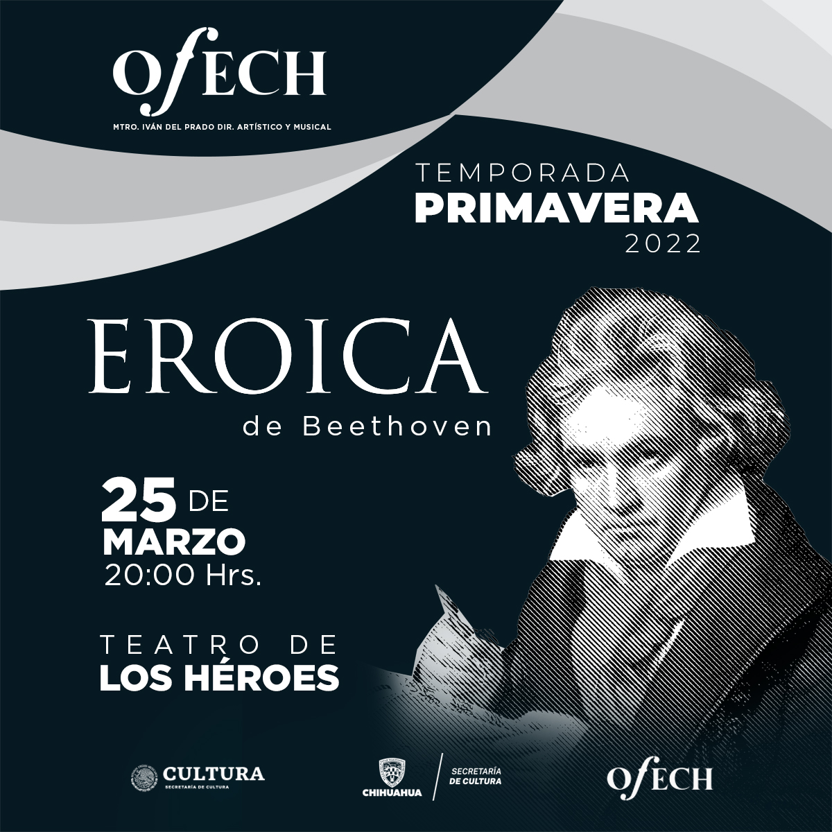 En Chihuahua, se presentarán en el Teatro de los Héroes. en punto de las 8 de la noche los siguientes conciertos: el 25 de marzo “Eroica” de Beethoven; el 8 de abril Halffter-Castro- Wagner-Haydn; el 22 de abril tendrá lugar el Festival de Guitarra; y el día 29 de abril el concierto “Vivaldi”.