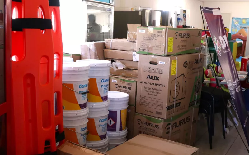 La donación en especie consistió en: mobiliario de oficina, artículos de cocina y electrodomésticos, equipamiento médico, material didáctico, lúdico y de estimulación temprana, así como equipo de protección civil.