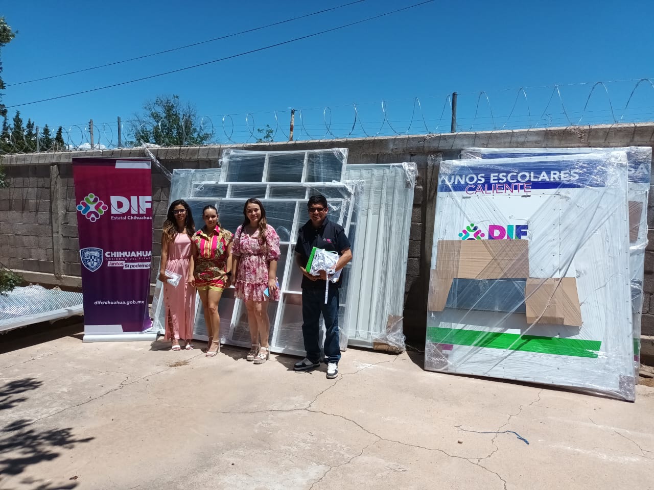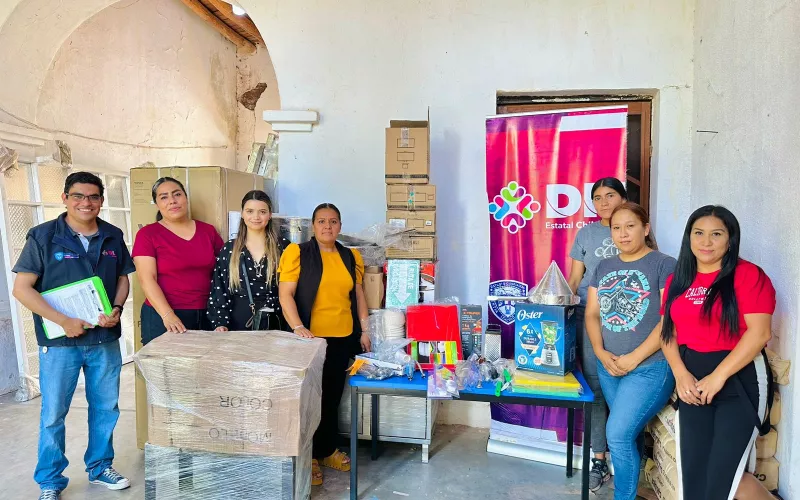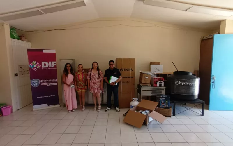 Como parte de las acciones que desarrolla a través de la Dirección de Alimentación y Desarrollo Comunitario, el DIF Estatal entregó equipamiento de cocina y módulos escolares a tres instituciones educativas, ubicadas en los municipios de Parral, Jiménez y Moris.
