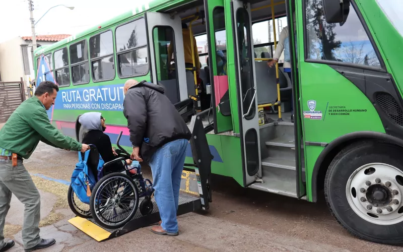 Personal de la SDHyBC indicó que con el servicio de transporte adaptado tipo urbano y de camionetas, se ofrecieron 41 mil servicios gratuitos a este sector de la población en la ciudad de Chihuahua, para que diariamente un promedio de 450 personas acuda a consultas médicas, escuelas y centros laborales.