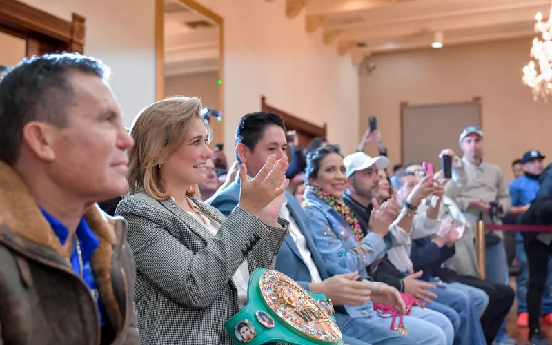La ceremonia de pesaje se realizó en el Salón 25 de Marzo de Palacio de Gobierno, acto al cual asistió la gobernadora Maru Campos; Lorenzo Soberanes Maya, supervisor del CMB; el secretario de la Coordinación de Gabinete, Luis Serrato Castell; Huber Corral, comisionado de Box y Lucha del Municipio de Chihuahua.