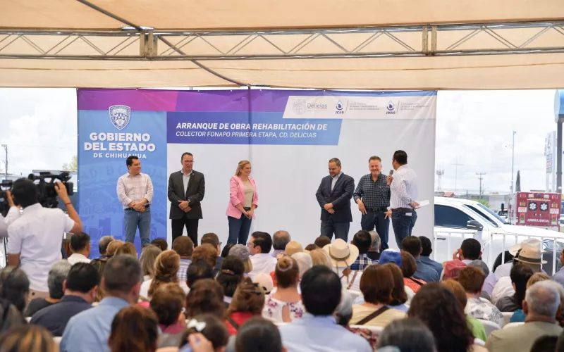 La gobernadora Maru Campos, dio el arranque formal a la primera etapa de la obra de rehabilitación del colector Fonapo en Delicias, que mejorará las condiciones del sistema de alcantarillado y saneamiento, en beneficio de 21 mil 220 habitantes de cuatro colonias.
