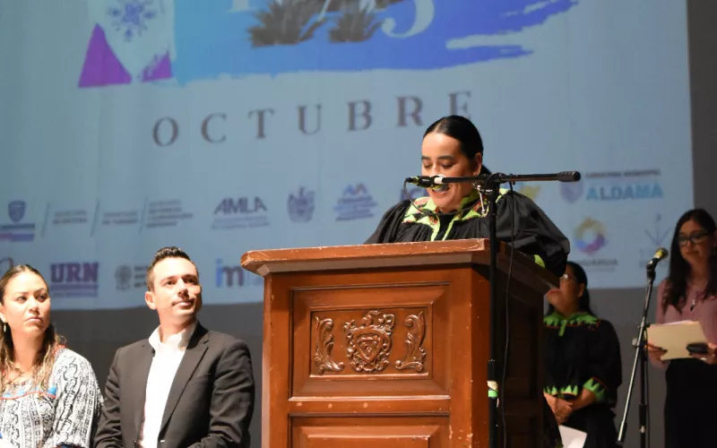 Niktelol Palacios Cuahtecontzi, presidenta de la AMLA, agradeció a la institución por brindar las facilidades necesarias para este evento, y permitir la creación de espacios que fomentan la diversidad lingüística y antropológica.