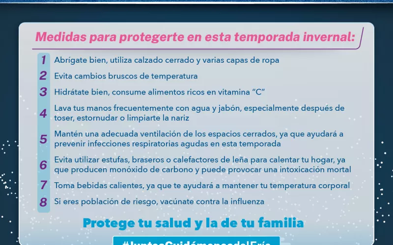 Llamó a la ciudadanía a abrigarse correctamente, no exponerse a cambios bruscos de temperatura, no asistir a sitios concurridos sin las debidas precauciones y utilizar cubrebocas para evitar un contagio propio o afectar a los demás.