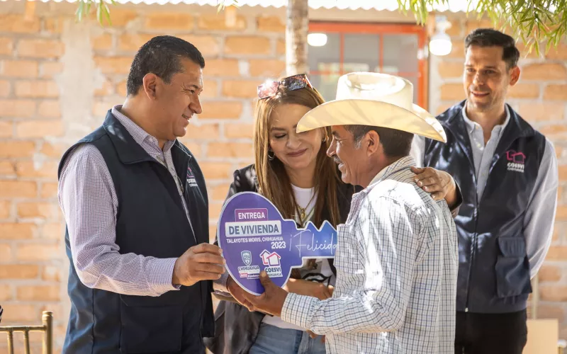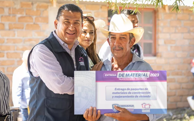 El Gobierno del Estado a través de Comisión Estatal de Vivienda (Coesvi), en conjunto con el Ayuntamientos de Moris, entregaron viviendas y paquetes de material de construcción a 12 familias del poblado de Talayotes, afectadas por el incendio forestal ocurrido en febrero de 2022.