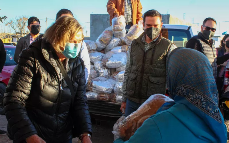 Personal de la dependencia, encabezados por su titular Enrique Rascón Carrillo, arribaron al municipio de Jiménez para beneficiar a mujeres y hombres, con 100 paquetes alimenticios, además de ropa de invierno por parte del DIF Estatal con el programa “Juntos Sin Frío”, así como obsequios para las niñas y niños de la comunidad.