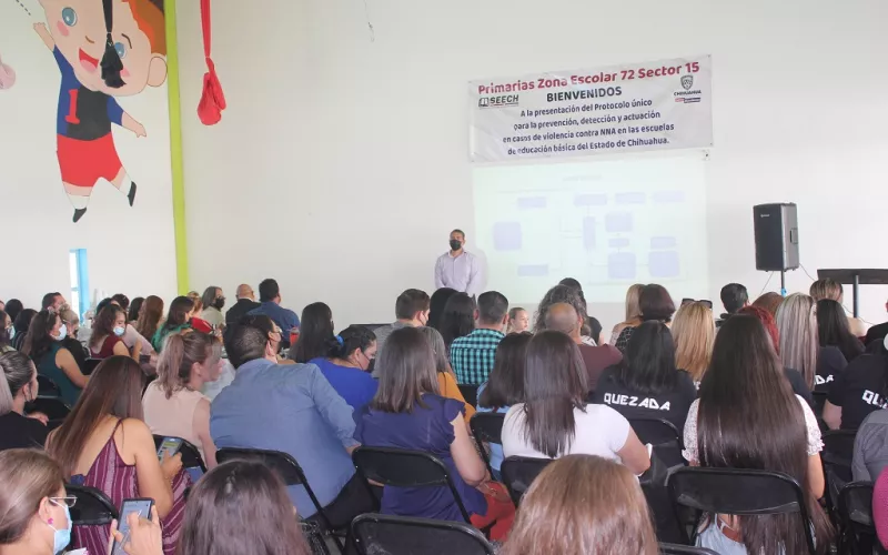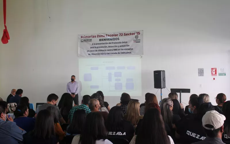 Más de 160 docentes, personal directivo y administrativo de planteles de la Zona Escolar 72 de Ciudad Juárez, fueron capacitados en el Protocolo Único para la Prevención, Detección y Actuación en casos de Violencia en contra de Niñas, Niños y Adolescentes, a fin de poder detectar e intervenir en el ámbito de su competencia, en los casos de abuso y maltrato infantil.