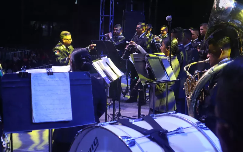 Como antesala a su presentación, el programa del evento inició con la intervención de la banda de la 11va Zona Militar, que interpretó canciones populares mexicanas, para crear un ambiente ameno entre los asistentes.