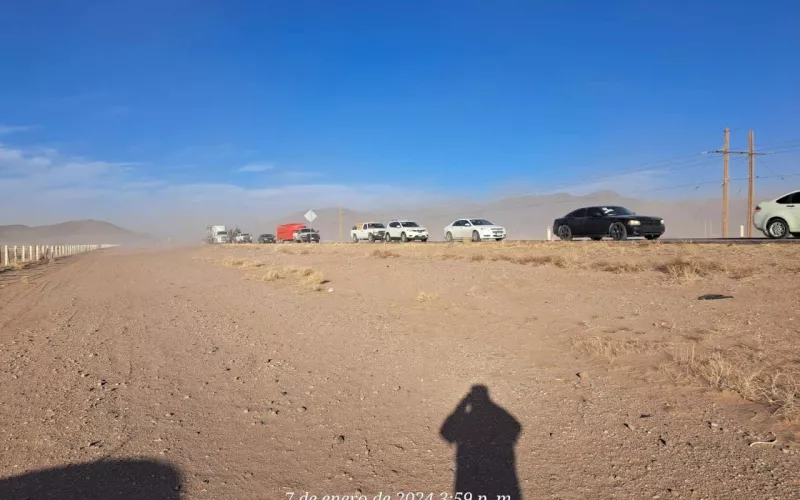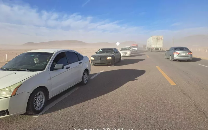 En Nuevo Casas Grandes se registró presencia de fuertes vientos, tolvaneras y baja visibilidad en carreteras; Ahumada reportó también fuertes vientos, tolvaneras y visibilidad de un 60 por ciento.