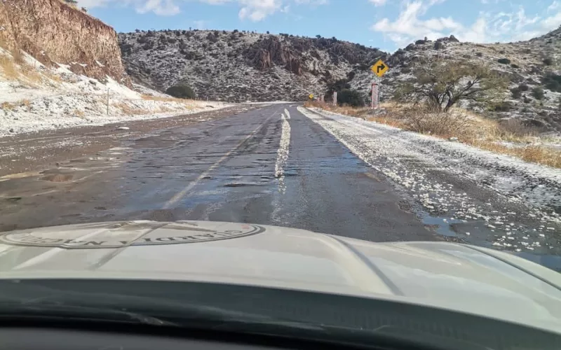 La Coordinación Estatal de Protección Civil (CEPC), informa que debido a que comenzó a nevar y a cubrir la cinta asfáltica, autoridades de Sonora y Chihuahua decidieron cerrar de manera preventiva el tramo carretero de Janos a Agua Prieta, por lo que recomienda que, si no has salido aún hacia esa vía, parar en algún lugar seguro.