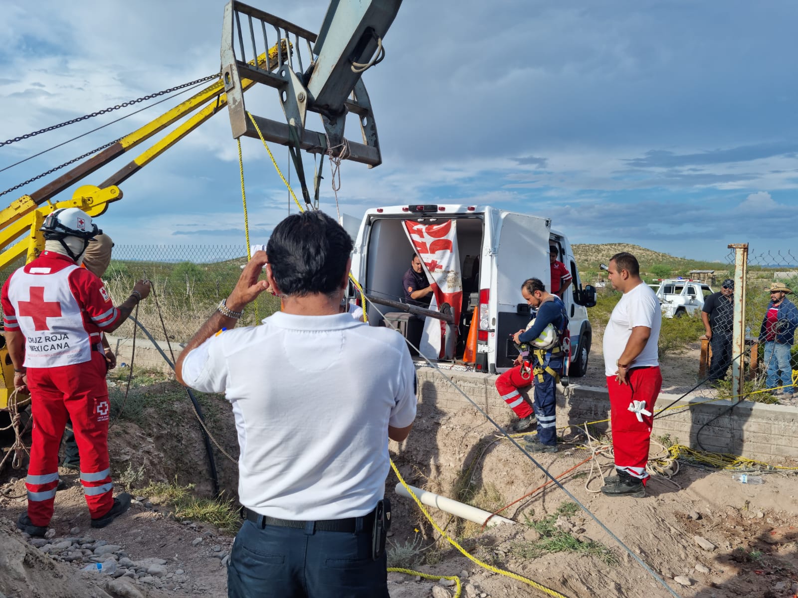 Por otra parte se informó a la dependencia sobre el arribo de una cuadrilla de rescate perteneciente a mina La Prieta, la cual realizó maniobras de despeje de escombro y anillos de concreto.