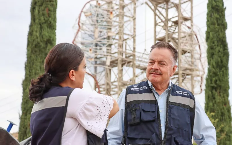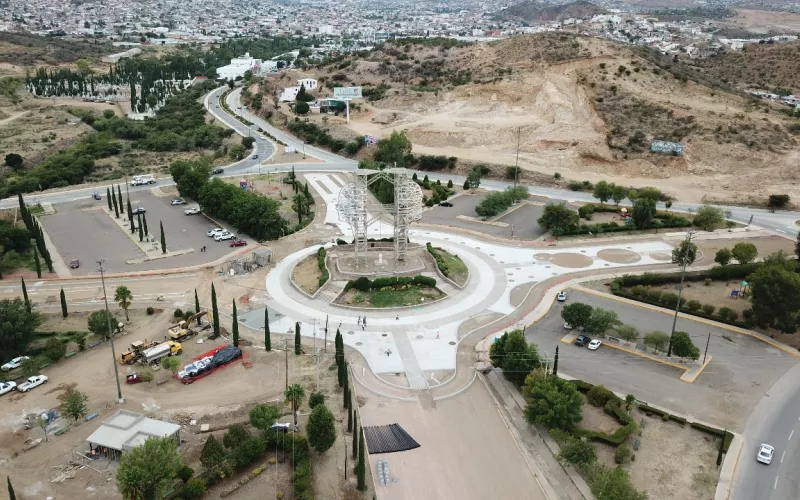 La supervisión comenzó en la construcción del Parque Puerta del Tiempo, para la cual se invierten más de 28 millones de pesos, y donde actualmente se registra un avance del 30 por ciento con acciones como el colado de guarniciones y banquetas, así como la instalación de alumbrado público, sistema de riego en jardineras, construcción de módulos de baños y kioscos de venta.