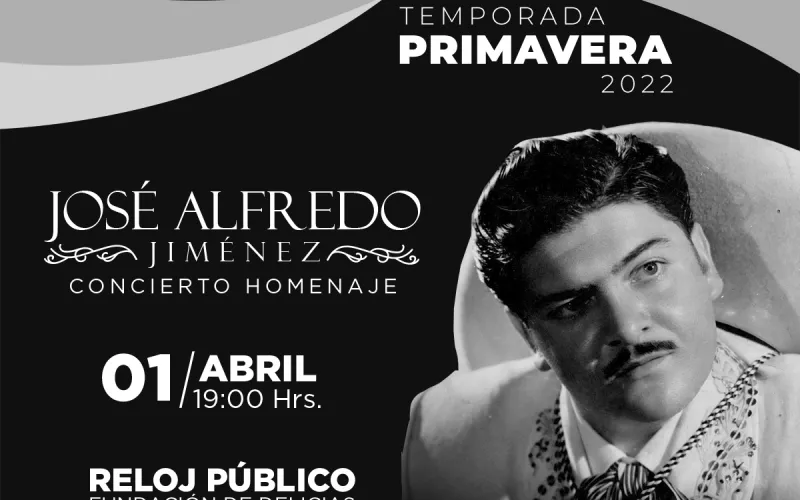 La Secretaría de Cultura y la Orquesta Filarmónica del Estado de Chihuahua, invita a las y los delicienses al concierto homenaje al hijo del pueblo, José Alfredo Jiménez “Un Mundo Raro” que estará amenizado por el barítono Juan Carlos Heredia, este viernes 01 de abril a las 7:00 de la tarde en el Reloj Público.