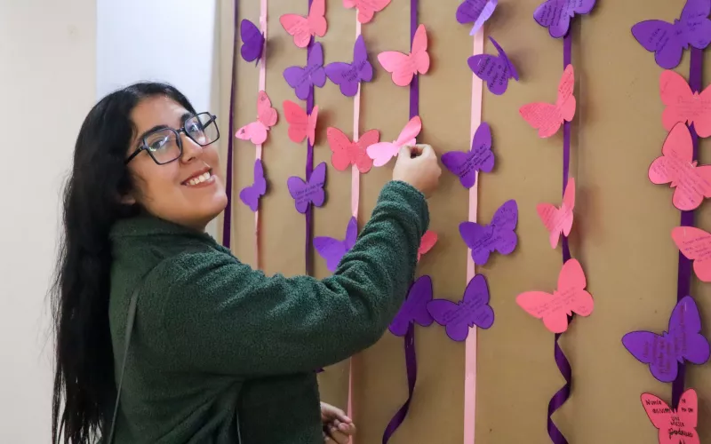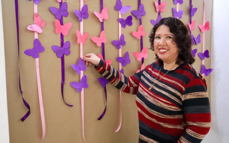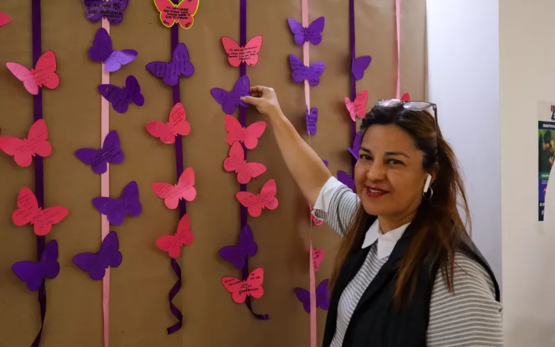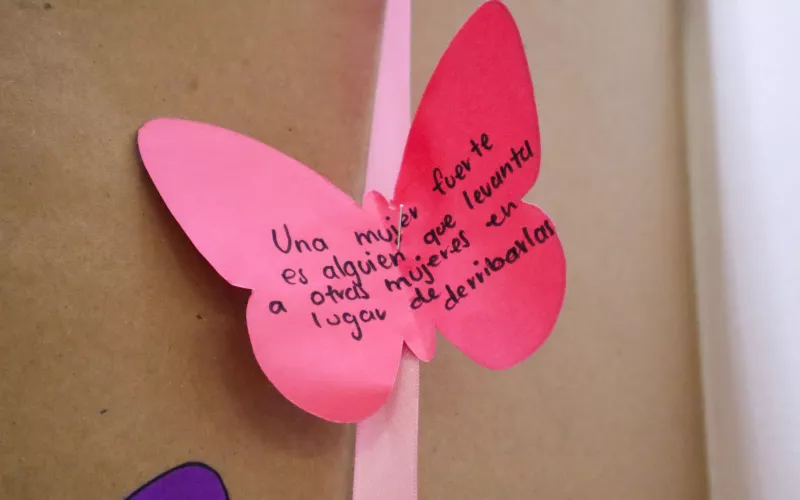 En el marco de la conmemoración por el Día Internacional de la Mujer, en el sexto piso del edificio Héroes de la Revolución fue instalado un mural de mariposas, para que funcionarias y público en general plasmen su reflexión sobre el valor de las mujeres en la sociedad.