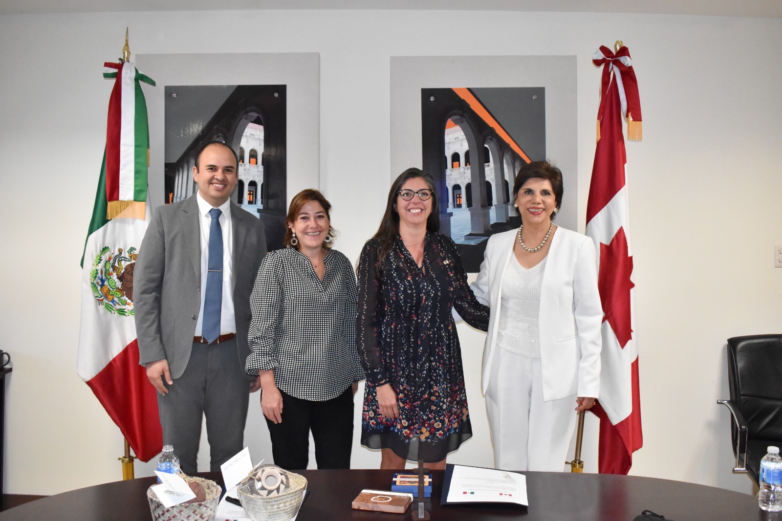 La secretaria de la Función Pública (SFP), María de los Ángeles Álvarez Hurtado, recibió en las oficinas de esta dependencia a la Cónsul de Canadá en México, Catherine Genois, quien realizó una visita para agradecer la colaboración que existe entre ambas instancias ya que la dependencia estatal es un enlace de apoyo entre la Dirección del Registro Civil y la Embajada de Canadá, a través del Centro Ciudadano de Información Telefónica (CCIT).