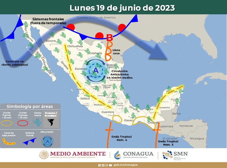 Con base en la información emitida por el Servicio Meteorológico Nacional, la CEPC indicó que, debido a una circulación anticiclónica en niveles medios de la atmósfera, se mantendrá la tercera onda de calor sobre el estado de Chihuahua, por lo que se pronostican temperaturas entre los 35 y 40 grados centígrados (°C) en los municipios del norte, centro, sur, noreste y sureste.