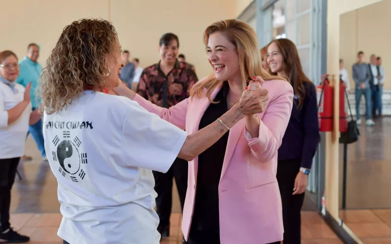 “Estamos trabajando duro y vamos poco a poquito ordenando la casa, gracias a lo cual hemos conseguido tener cada vez más posibilidades para apoyar”, expresó la Gobernadora, quien tuvo la oportunidad de conversar con adultas mayores alumnas de la clase de Tai chi chuan, quienes le comentaron que algunas de ellas asisten al Jardín del Abuelo desde hace 19 años.