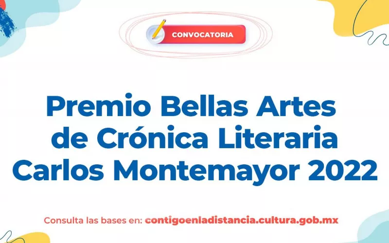 El Premio Bellas Artes de Crónica Literaria “Carlos Montemayor”, convoca a escritoras y escritores mexicanos, así como extranjeros con residencia mínima de cinco años en el país, con un libro de crónica de temática libre, tanto en español como en un idioma originario, y otorga al ganador o ganadora un premio único e indivisible de 100 mil pesos.