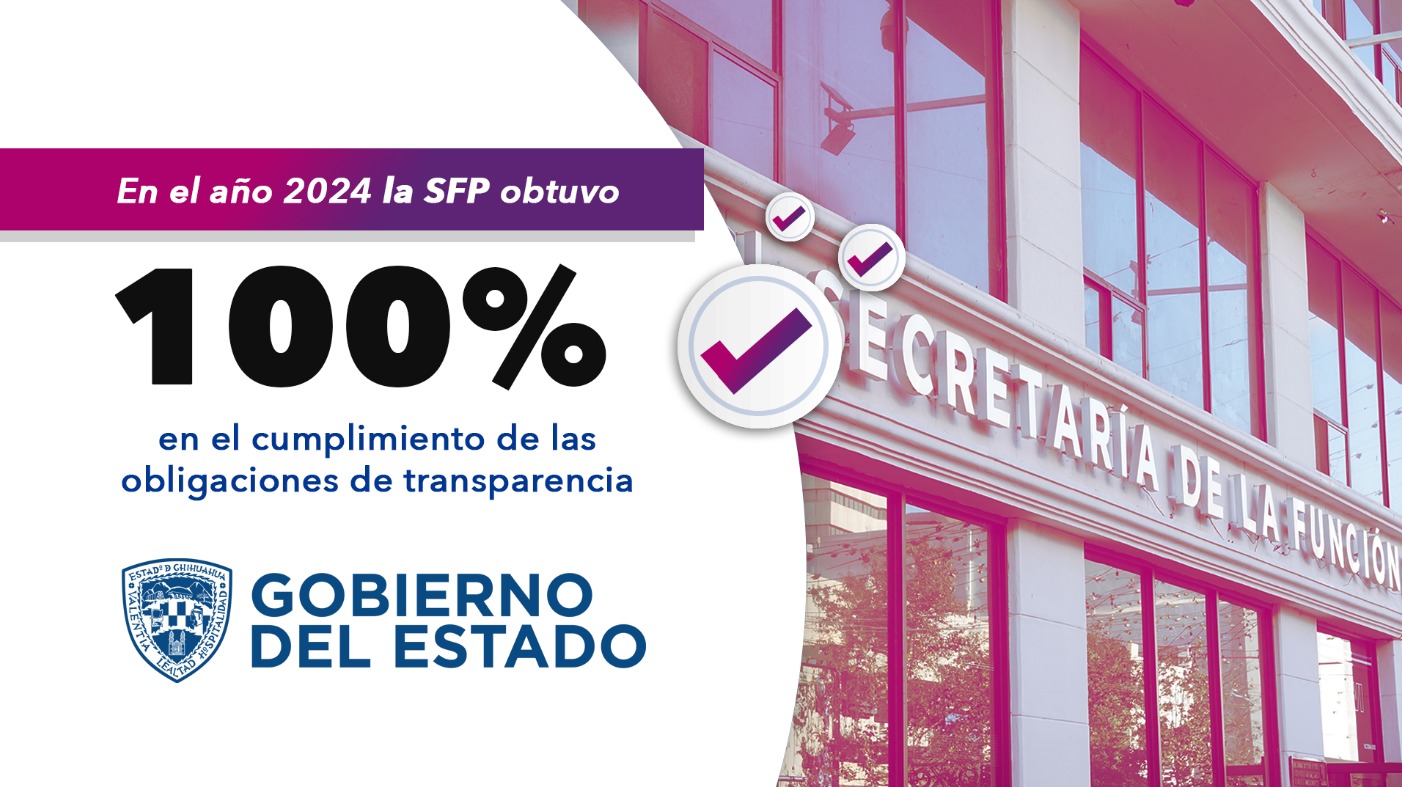 La Secretaría de la Función Pública (SFP), dio a conocer que obtuvo un resultado del 100 por ciento en cuanto a cumplimiento de las obligaciones de transparencia correspondientes al ejercicio 2024, según lo establecido en el Dictamen de Verificación realizado por el Instituto Chihuahuense para la Transparencia y Acceso a la Información Pública (Ichitaip).