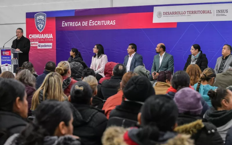 El Gobierno del Estado en alianza con el Instituto Nacional del Suelo Sustentable (INSUS), entregó en Ciudad Juárez 560 escrituras de vivienda a igual número de familias, lo que las convierte en propietarias de su patrimonio.