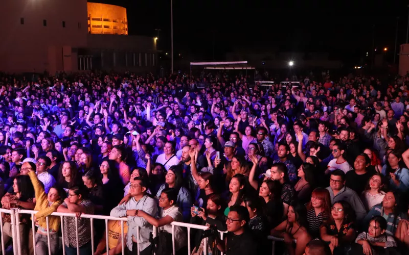 Cerca de siete mil juarenses se dieron cita en la explanada del Centro Cultural Paso del Norte, para corear las canciones de los artistas Caloncho, Esteman, La Garfield, Óscar Flores y Panamá Cha Cha, en el concierto que se realizó este sábado 28 de octubre en el marco del Festival Internacional Chihuahua (FICh) 2023.