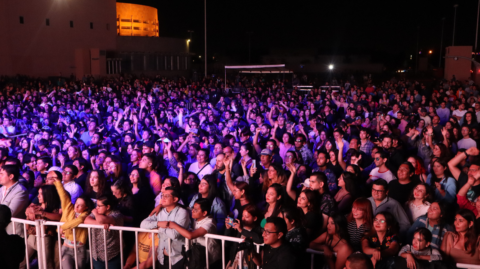 Cerca de siete mil juarenses se dieron cita en la explanada del Centro Cultural Paso del Norte, para corear las canciones de los artistas Caloncho, Esteman, La Garfield, Óscar Flores y Panamá Cha Cha, en el concierto que se realizó este sábado 28 de octubre en el marco del Festival Internacional Chihuahua (FICh) 2023.