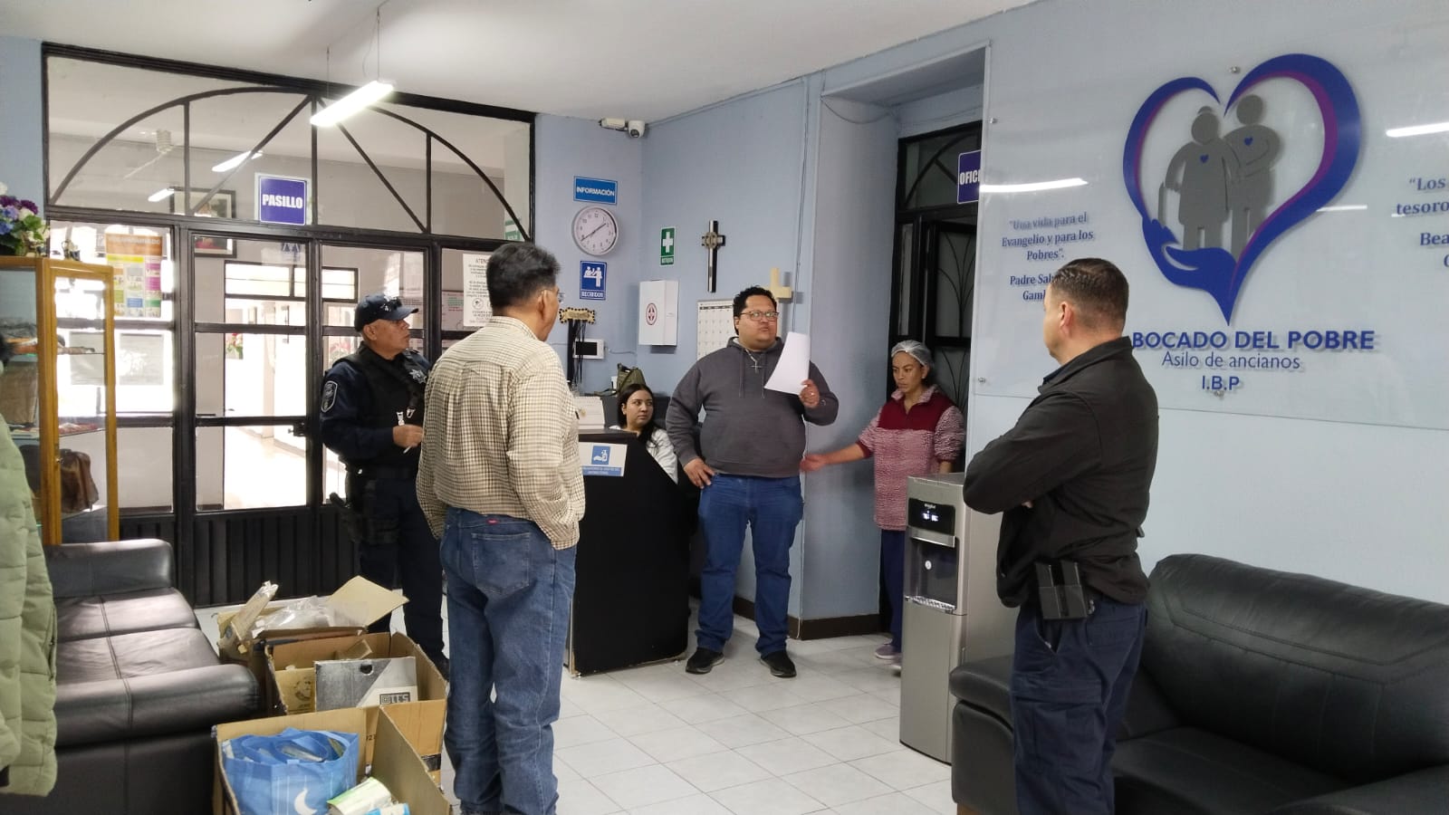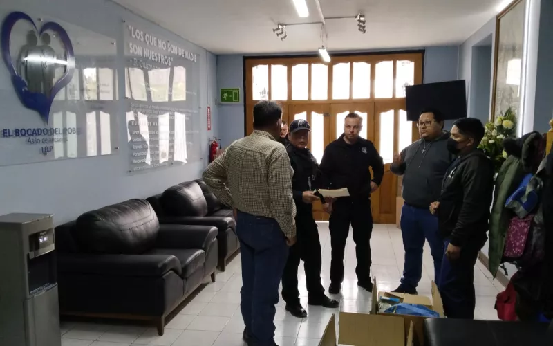 Personal de la Secretaría de Seguridad Pública (SSPE), adscrito a la Dirección de Seguridad Bancaria, Comercial e Industrial, donó equipo médico y material de curación al asilo "Bocado del Pobre", de la ciudad de Chihuahua, para la atención de las personas adultas mayores usuarias del lugar.