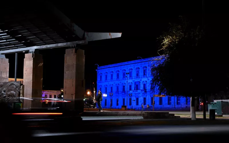 La fachada este del Palacio de Gobierno, Semilla Museo Interactivo y la rueda de la fortuna del parque El Colibrí, se iluminaron de azul para sumarse a la conmemoración por el Día Mundial de la Concientización sobre el Autismo.