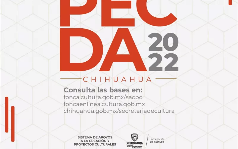 La Secretaría de Cultura del Gobierno de México, a través del Sistema de Apoyos a la Creación y Proyectos Culturales (SACPC), y el Gobierno de Chihuahua, a través de la Secretaría de Cultura estatal, convocan a las y los artistas, intérpretes y creadores a participar en la convocatoria del Programa de Estímulos a la Creación y Desarrollo Artístico (PECDA) en su edición 2022.