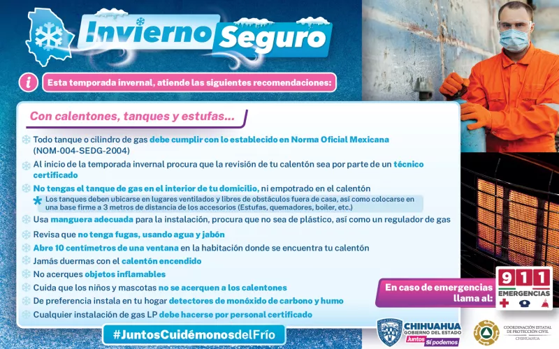 Entre los cuidados en el hogar, la dependencia estatal pide no sobrecargar tomas eléctricas, además de ventilar adecuadamente las viviendas cuando se utilicen calefactores, dejando una ventana abierta 15 cm para evitar riesgos, así como apagando cualquier fuente de calor antes de ir a la cama.