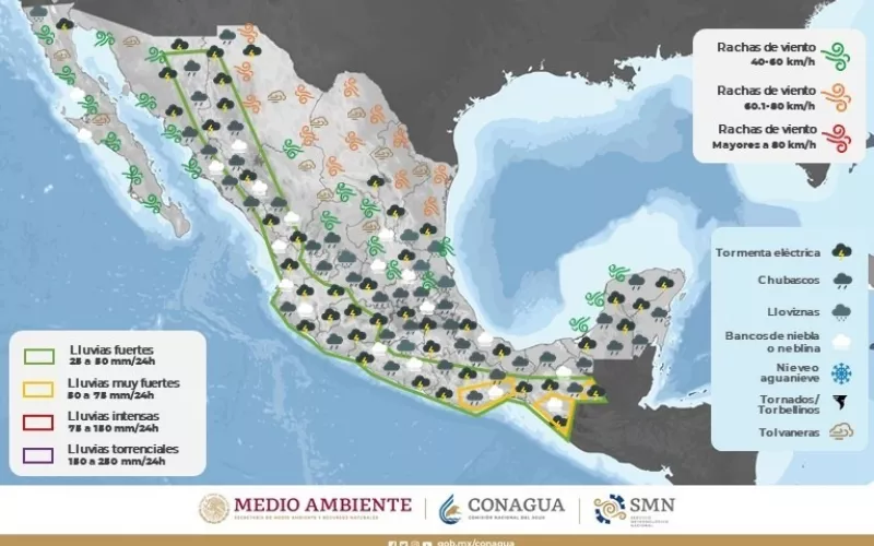 Se pronostican lluvias moderadas a puntualmente fuertes en la zona noroeste del estado, con acumulaciones de entre 25.1 y 50 milímetros (mm) en Guadalupe y Calvo, Casas Grandes, Madera, Moris, Ocampo, Urique, Batopilas y Morelos.