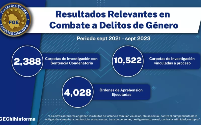 Resultados que ubican a Chihuahua como uno de los estados con mayor grado de efectividad en la atención de las denuncias de delitos de género, porque las víctimas saben que hay resultados en las investigaciones y se procede puntualmente en contra los responsables.