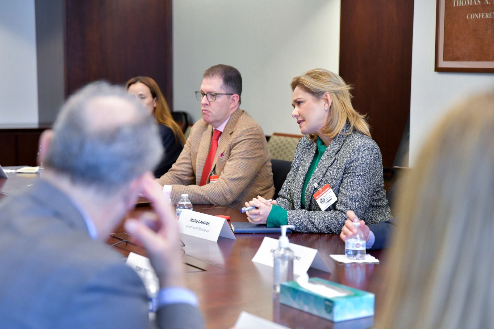 Del mismo modo, acompañaron a la Gobernadora, el secretario de Seguridad Pública, Gilberto Loya Chávez y la secretaría de Innovación y Desarrollo Económico, María Angélica Granados Trespalacios, quienes secundaron a la jefa del ejecutivo en el diálogo sobre las oportunidades en llevar la industria de semiconductores a México.
