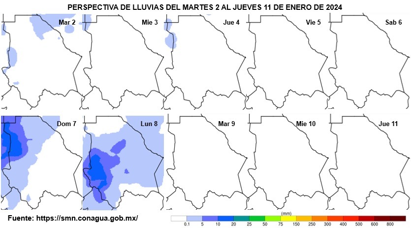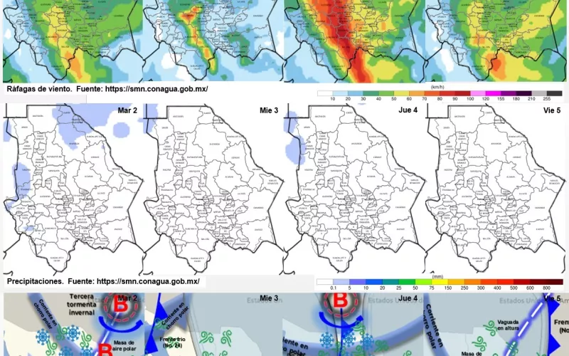 En cuanto a los vientos, irán de los 10 y 55 kilómetros por hora; las ráfagas pueden ocasionar tolvaneras en los tramos carreteros de Jiménez a Parral y en algunas zonas de Carichí, Guachochi, Nonoava y Balleza.