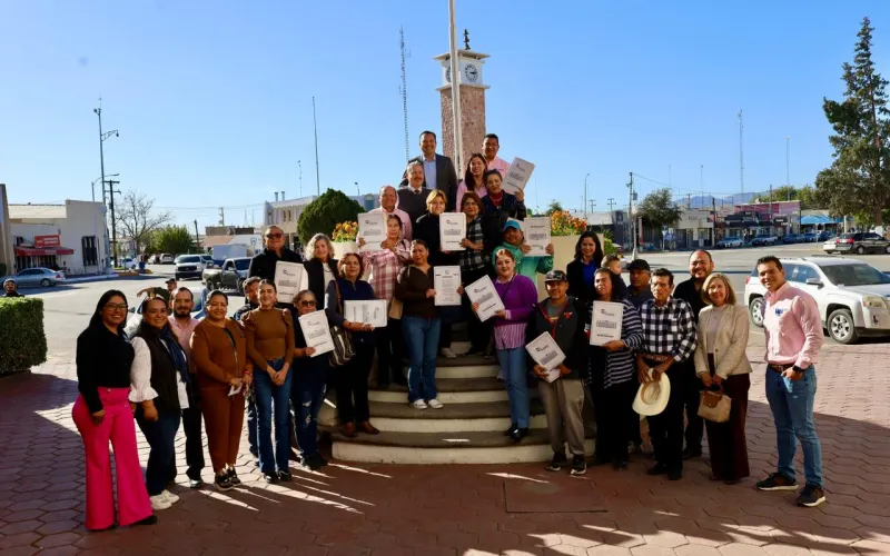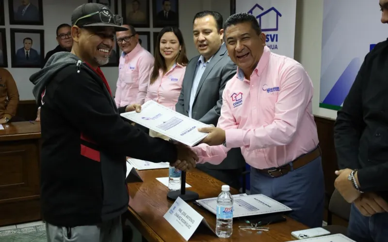 La Comisión Estatal de Vivienda, Suelo e Infraestructura (Coesvi) entregó 16 escrituras a familias del municipio de Delicias que habitan en fraccionamientos IVI-COESVI.