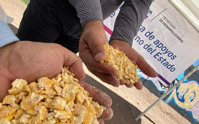 El Gobierno del Estado a través de la Secretaría de Desarrollo Rural inició el proceso de entrega de maíz rolado a productores con actividad ganadera principalmente, distribuyendo en una primera fase 756 toneladas del grano a más de 80 beneficiarios en el municipio de Aldama.