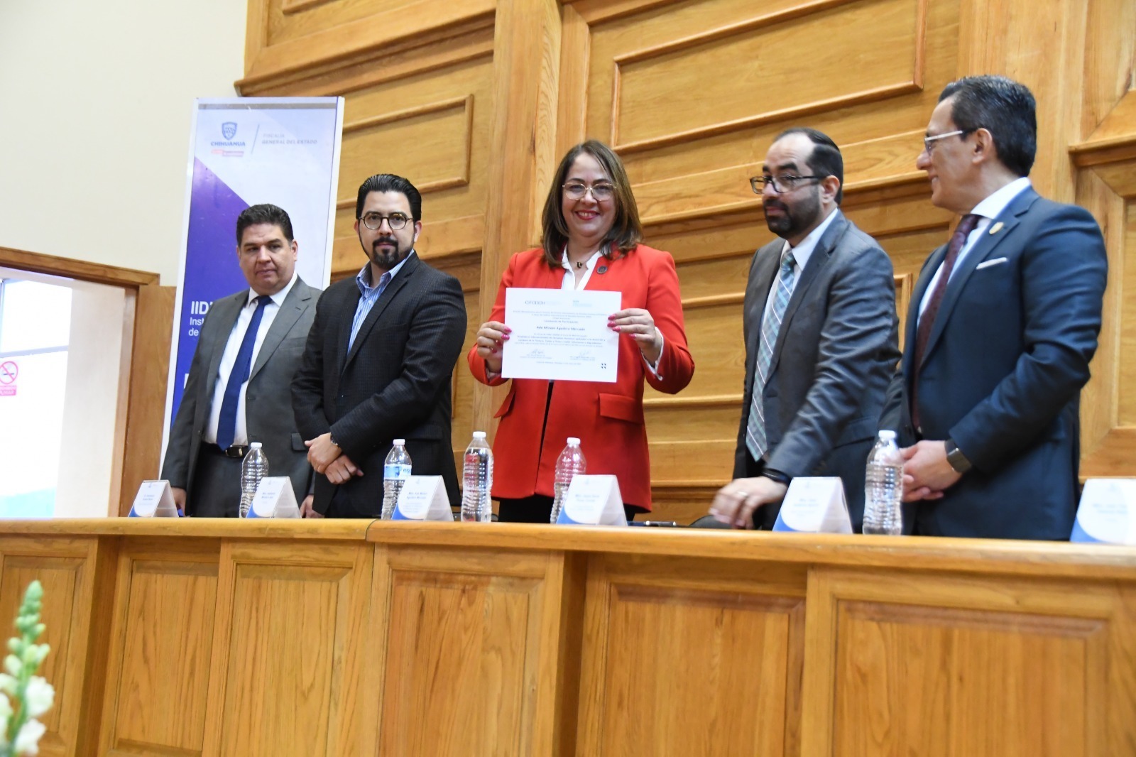 La ceremonia fue encabezada por el fiscal especializado en Control Análisis y Evaluación, Jesús David Flores Carrete, en representación del fiscal general del Estado, César Jáuregui Moreno; la fiscal especializada en Investigación de Violaciones a los Derechos Humanos y Desaparición Forzada, Ada Miriam Aguilera Mercado; el fiscal de distrito Zona Centro, Heliodoro Araiza Reyes; el director de la Facultad de Derecho, César Gutiérrez Aguirre y el director del Cifodidh, Adalberto Méndez López.
