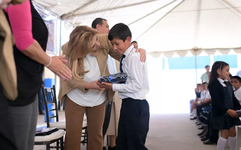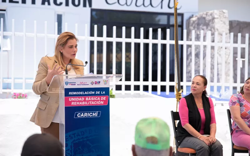 En el marco de la gira que la Gobernadora Maru Campos realizó por el municipio de Carichí, entregó apoyos diversos para estudiantes y maestros, equipamiento para policías municipales, y puso en operación una Unidad Básica de Rehabilitación (UBR), así como una planta tratadora de aguas residuales.