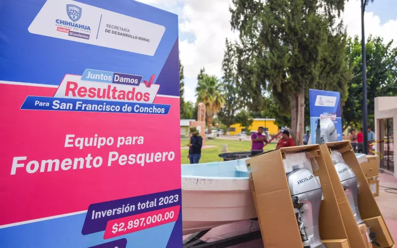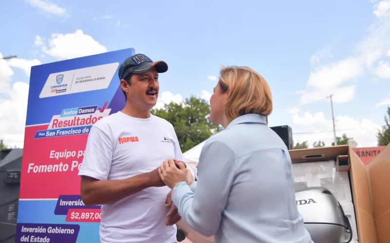 Como parte de la gira que realizó por el municipio de San Francisco de Conchos, la gobernadora Maru Campos inauguró las obras de pavimentación de dos calles y entregó equipo para el fomento pesquero a productores de la región.