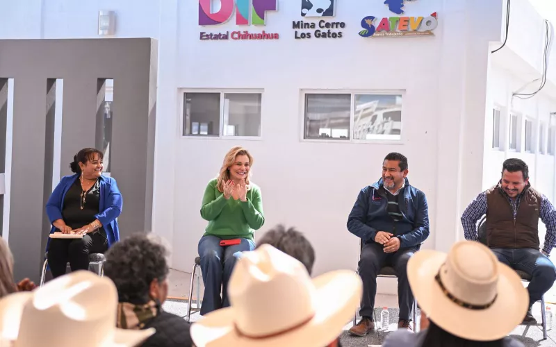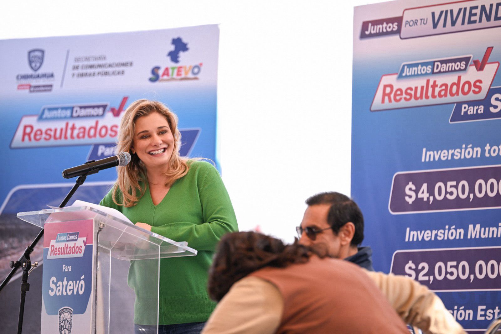 En gira de trabajo por el municipio de Satevó, la gobernadora Maru Campos entregó de manera simbólica las obras de rehabilitación de 43 kilómetros de caminos vecinales, así como los trabajos de ampliación y remodelación en 54 viviendas.