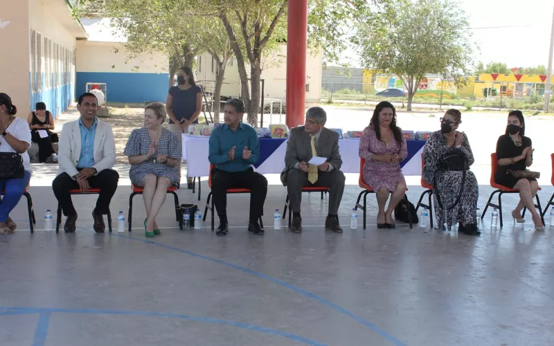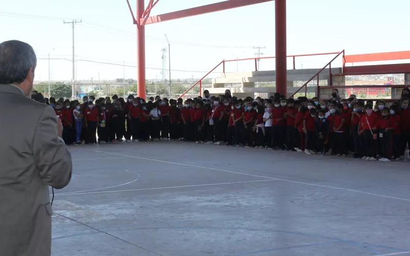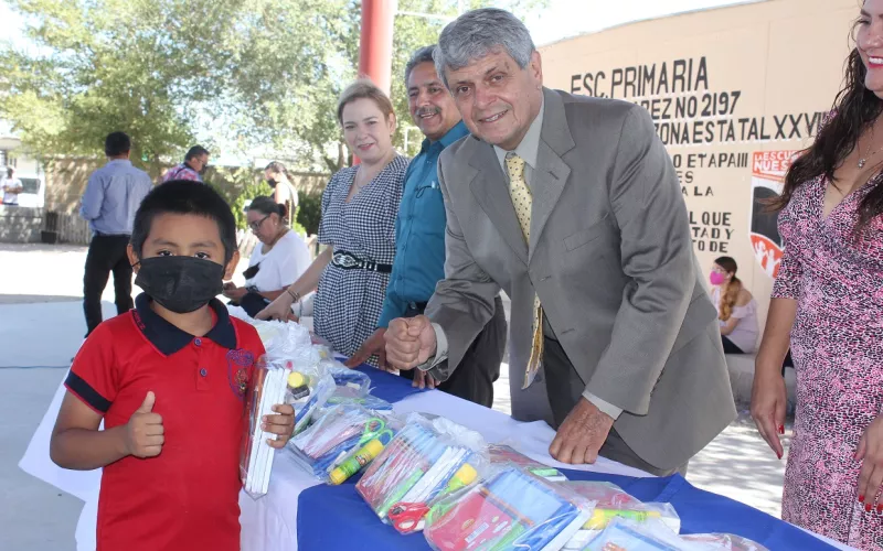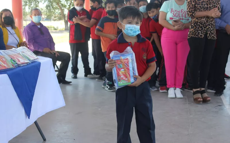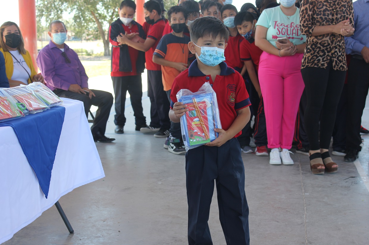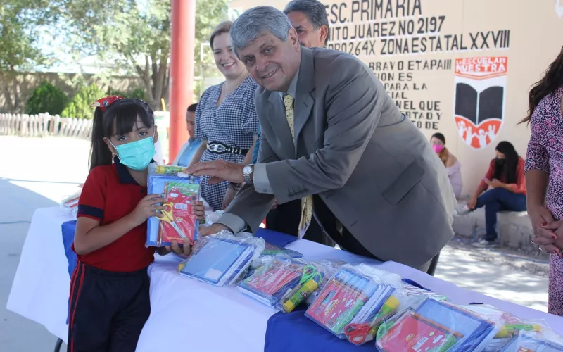 La Secretaría de Educación y Deporte (SEyD) entregó paquetes de útiles escolares a estudiantes de la Escuela Primaria Benito Juárez, ubicada en el fraccionamiento Riberas del Bravo, en Ciudad Juárez.