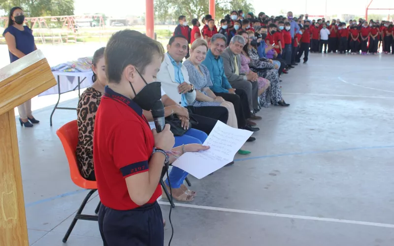 “Queremos agradecer el apoyo de estos materiales educativos que serán usados de la mejor manera en nuestros estudios, recuerden que siempre serán bienvenidos en nuestra escuela”, expresó el alumno de quinto grado, Mateo Jiménez Gardea.