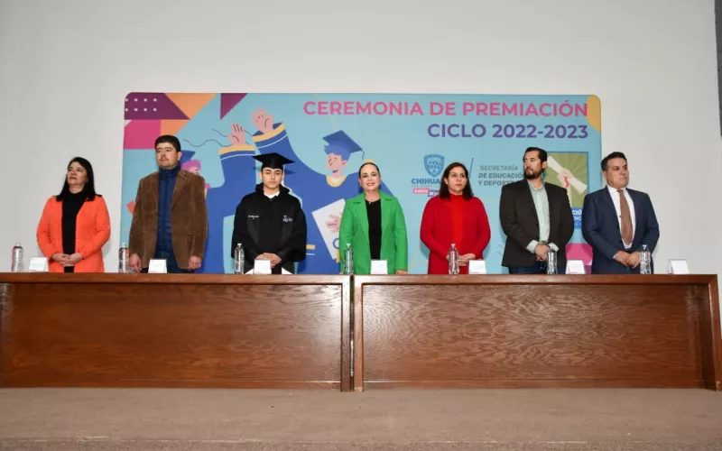 La Secretaría de Educación y Deporte (SEyD) realizó la ceremonia de premiación del programa “Generación de Excelencia 2023”, para alumnas y alumnos de los niveles de Secundaria, Media Superior y Superior, de la Región Cuauhtémoc.