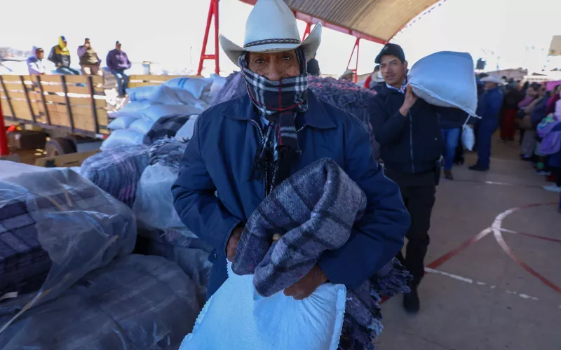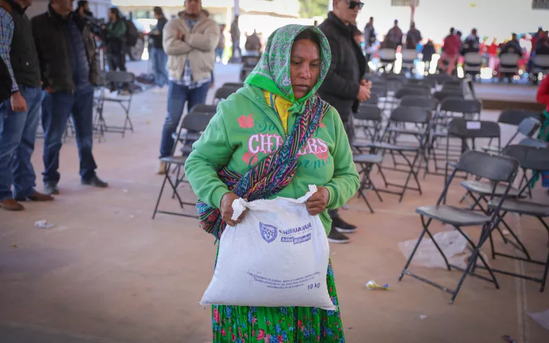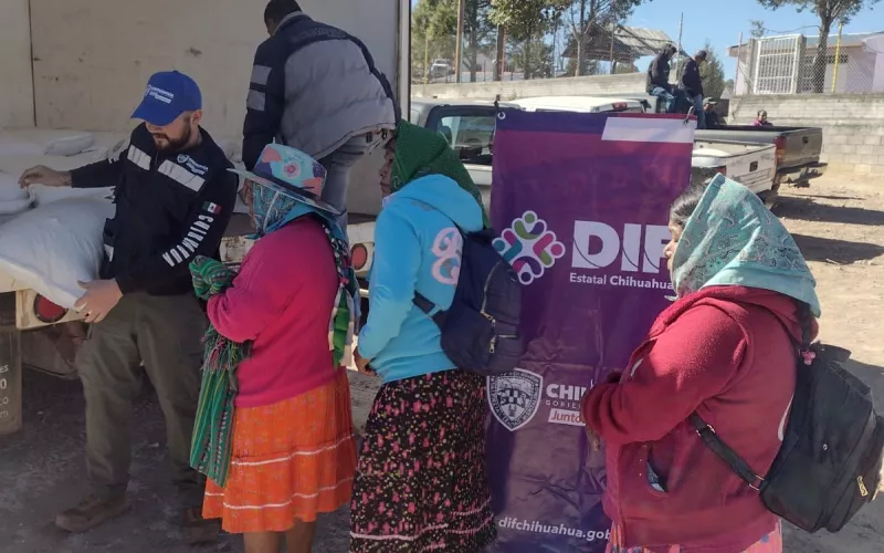 En Urique se distribuyeron 102 toneladas de maíz y frijol, además de 1,200 cobijas y 100 chamarras para niñas, niños y adolescentes; en Guadalupe y Calvo fueron 240 toneladas de alimento, así como 1,500 cobijas y chamarras para familias de 13 comunidades de la región.